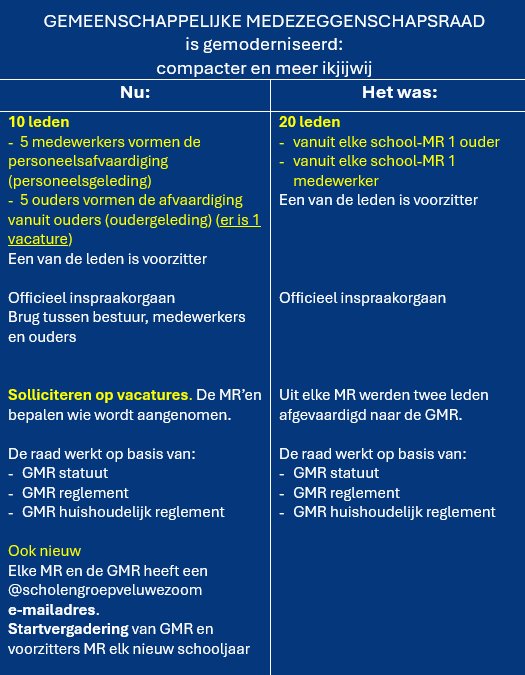De gemeenschappelijke medezeggenschapsraad (GMR) is gemoderniseerd. De wijzigingen staan in het kader hieronder. Lees ook het interview. Verderop op deze pagina: Vraag en Antwoord.