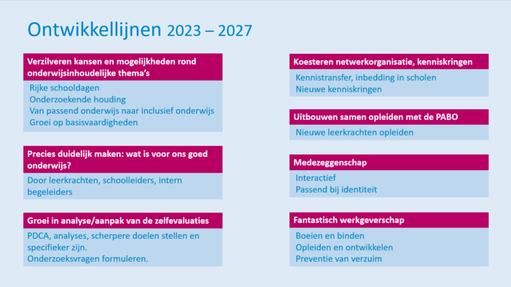 Sterk onderwijs bereik je door je voortdurend te ontwikkelen. We hebben ontwikkellijnen afgesproken.